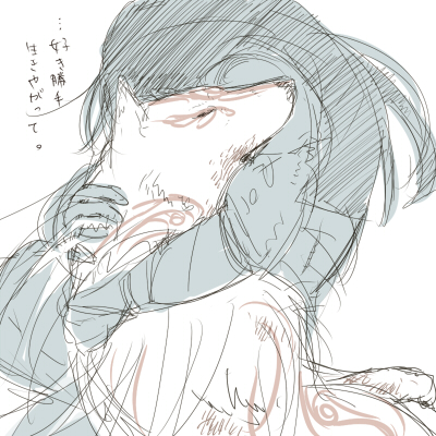 以前も描いたような構図ですが、こういうふうにぎゅっと抱きしめるというのが好き。抱きしめられたんだろうか。イッシャクは。
