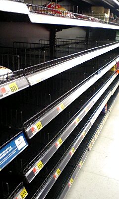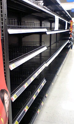 納豆とか豆腐とか安い食材、全然ないね。牛乳もないね。ひとり暮らしだと、昼間買いに行けないから手に入れるのは難しいねぇ。丁度この間実家からの補給物資「米・白菜」という重要物資と、先輩が遺して(笑)行ってくれた小麦粉があったから、幸運でした。引越しの時いらないって貰ってよかった。缶詰はある程度いつも常備させてたし。懐中電灯も電池も基本常備してるし。あれ?自分結構エライぞ?